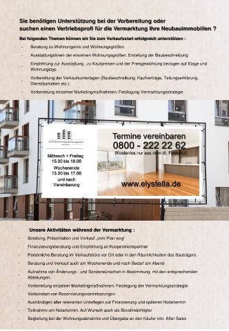 - Persönliche Beratung im Verkaufsbüro vor Ort oder in den Räumlichkeiten des Bauträgers.