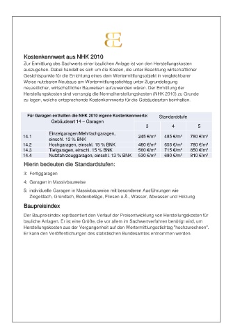 Für Garagen enthalten die NHK 2010 eigene Kostenkennwerte: Standardstufe