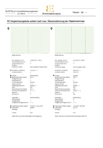 10 Vergleichsangebote sortiert nach max. Übereinstimmung der Objektmerkmale